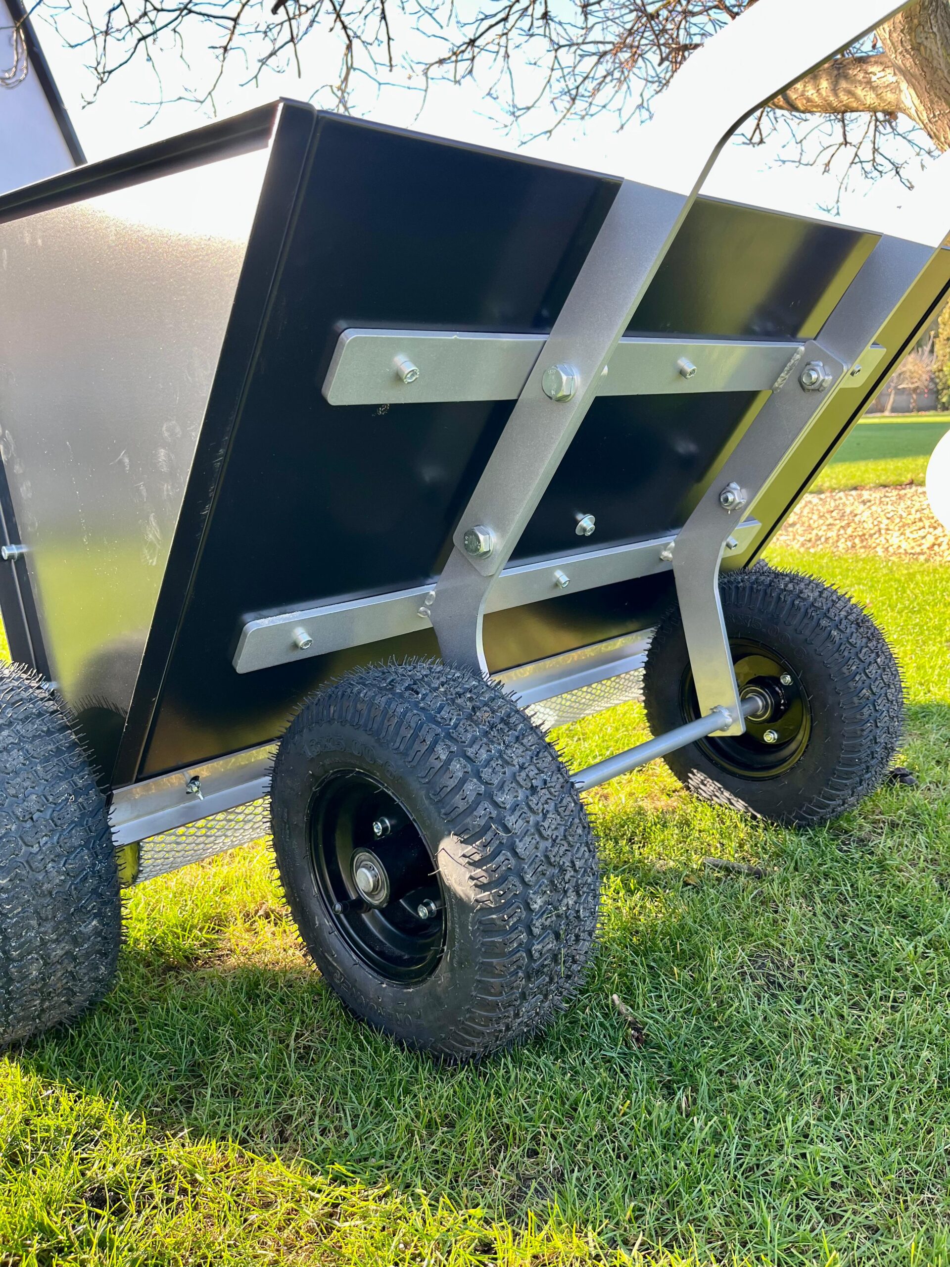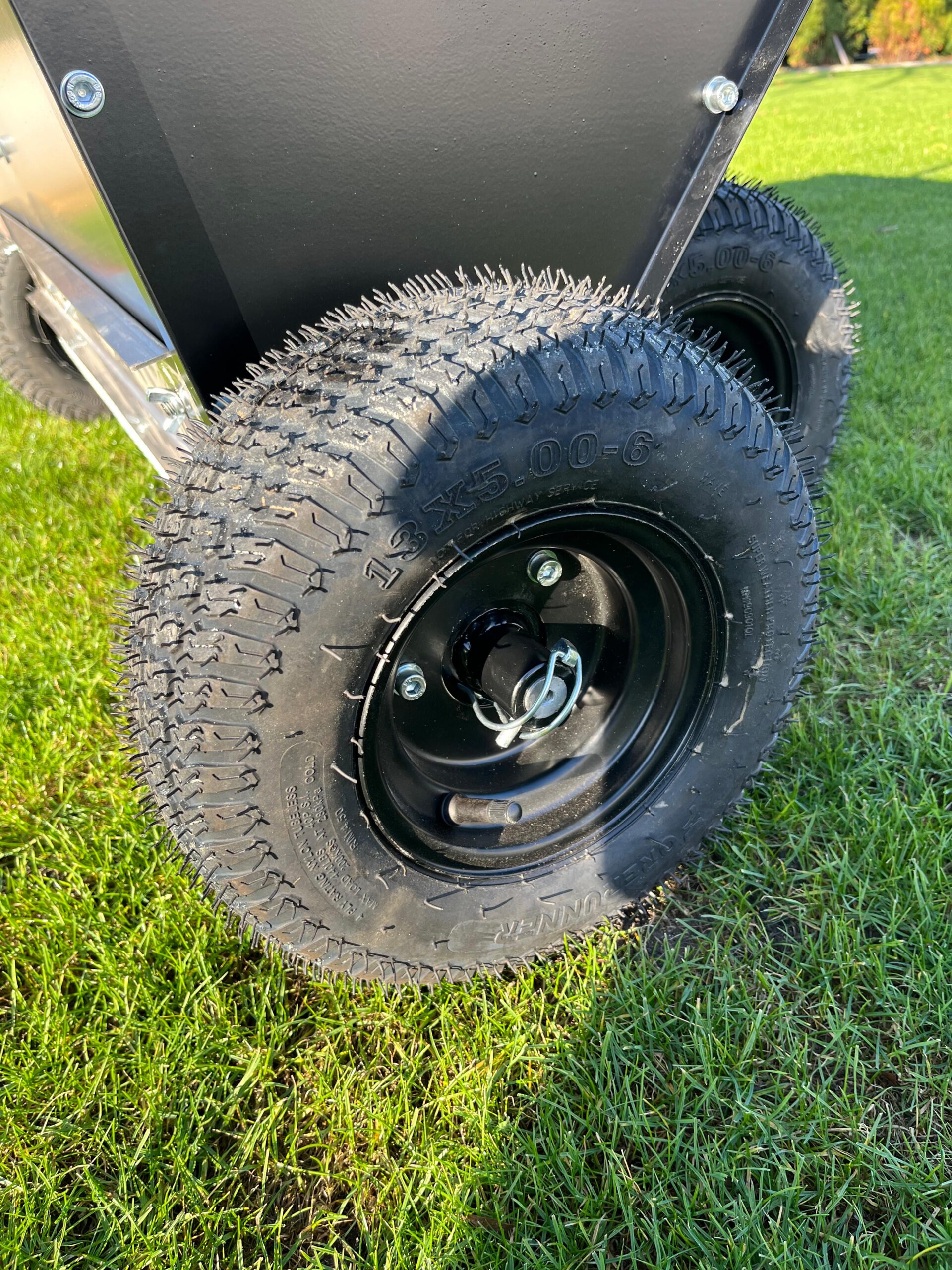 Stabilność i lekkość pracy: pompowane koła na solidnych łożyskach zapewniają wygodne prowadzenie, nawet przy pełnym zasobniku.